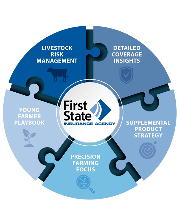 At First State, we know crop insurance is cyclical - but are you really getting the most out of your insurance? That’s why we created Crop 360, a comprehensive approach to service and a unique suite of products and expertise to meet your insurance needs. Let us be the partner you’re looking for when making crop insurance decisions as your farming operation changes. What can you expect from Crop 360?